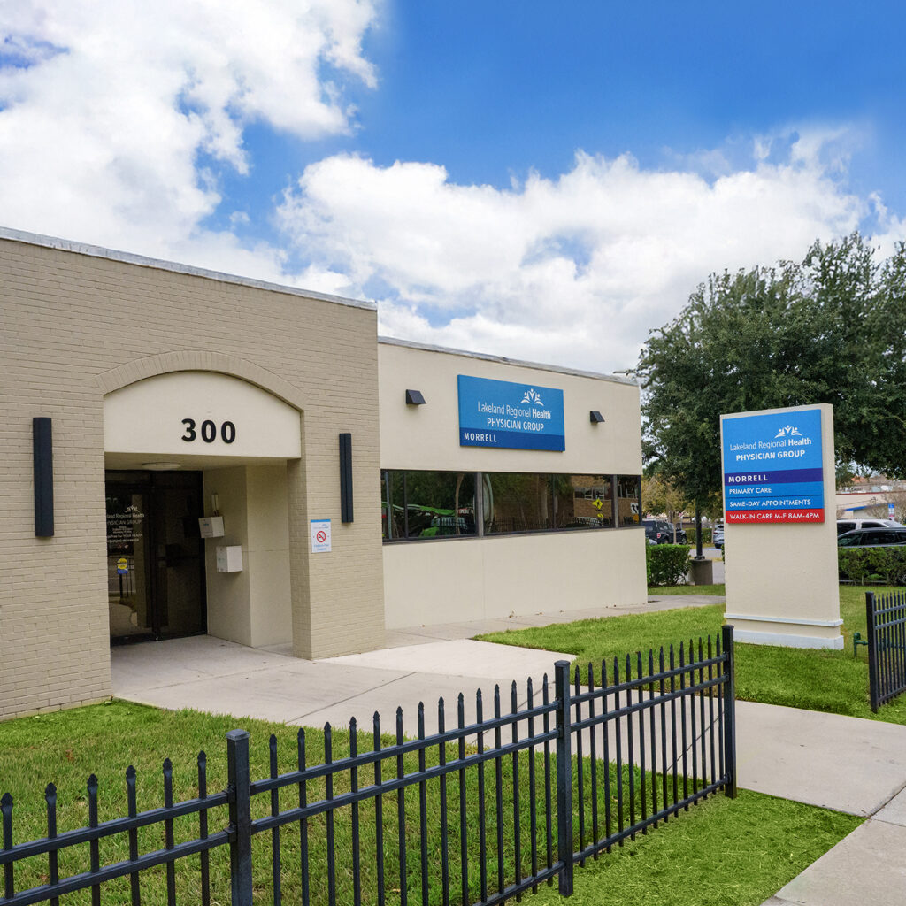 Morrell, located across the street from the Medical Center at 300 Parkview Place, Lakeland, is a primary care clinic that offers walk-in care and same-day appointments, as well as on-site lab services and resources for insurance and prescription assistance. You can make an appointment at Morrell by calling 863.284.5000.